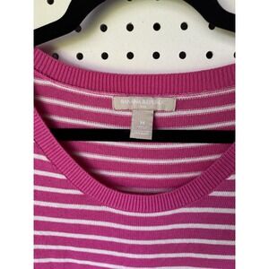 Banana Republic Women's M Pullover Sweater Pink White Stripe Button Shoulder