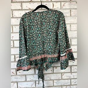 Such a cute piece! See detailing of crochet on arms and trim of blouse