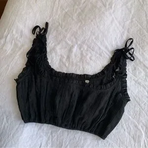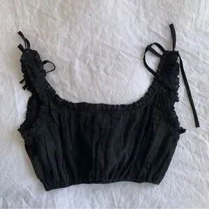NWT Doen Renee Ramie Pintuck Ruffle Sleeveless Tie Crop Blouse Top Black