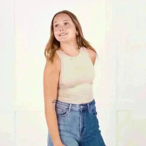 This is a seamless tank style with a round neck for great coverage. It is buttery, soft, stretchy, and so comfy! It has a double-snap closure with cheeky booty coverage.