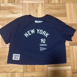 New York Yankees Pro Standard Retro Classic Cropped Boxy Tee in Navy, Size M