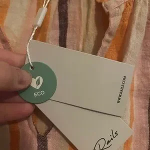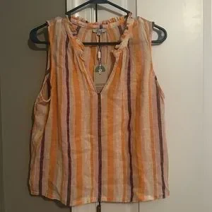 This Rails tank top showcases a vibrant blend of orange and pink stripes, perfect for a casual summer look. The sleeveless design and v-neckline offer a breezy, comfortable fit, ideal for warm weather. Its flowy silhouette adds a touch of effortless style to any outfit.