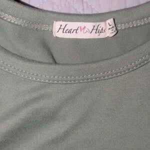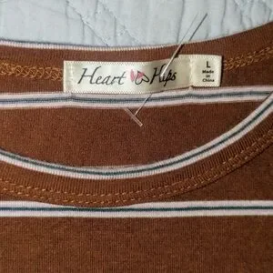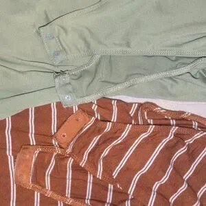 Stylish bodysuits by Heart Hips. One features brown with white stripes. The other is a solid green. Perfect for versatile styling.