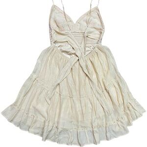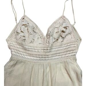 Beautiful Floral Crochet look Top with a Tiered Ruffle Skirt, Open back, Wide Ties, and Elastic Waistband, Adjustable Straps and inner Lining.