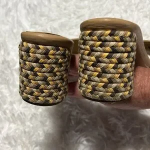 Kaanas Tobago Tan Leather Multicolor Braid Wrapped Block Heel Slides Sandals 8