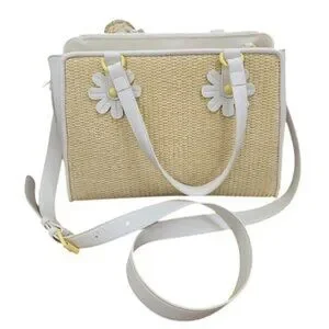 Brand new with tags 100% authentic BETSY JOHNSON ALFIE woven shoulder bag features cut faux leather flowers and butterfly. The butterfly is a " detachable butterfly fob.