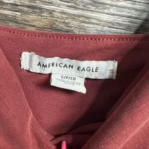 This vibrant red jumpsuit from American Eagle Outfitters features delicate spaghetti straps and a chic draped neckline. The elastic waist offers a comfortable fit, while the lightweight fabric ensures a breezy feel, perfect for casual outings.