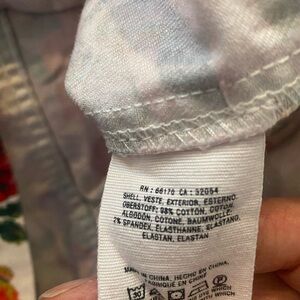 This Anthro Maeve Floral Garden denim pencil skirt has a button fly with front and back pockets. Vibrant Orange/Red Roses with green accents