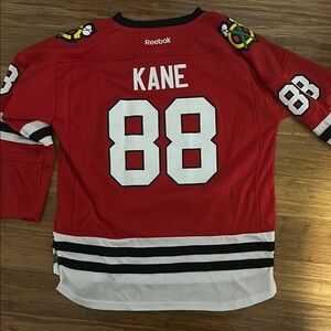 This Reebok jersey showcases a vibrant red and black color scheme, perfect for sports enthusiasts. Featuring the iconic Blackhawks logo on the front, it combines style with comfort. Ideal for fans who appreciate classic design elements in their sportswear.
