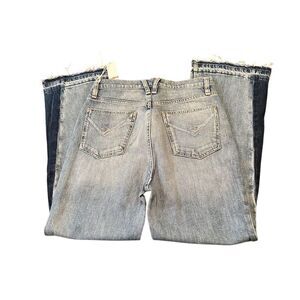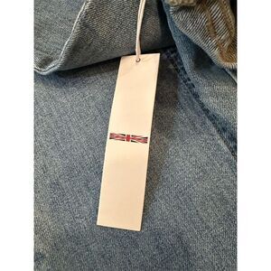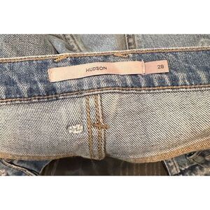 These Hudson wide-leg jeans in size M offer a relaxed fit and feature a medium fabric wash with distressed accents. Made from a blend of cotton and elastane, they provide comfort and flexibility. The jeans have a mid-rise and a zip closure, suitable for all seasons. Manufactured in Mexico, they are machine washable for easy care. Ideal for casual outings or a retro-inspired look. New condition. *** slight flaw on the back upper seam, please see photos.