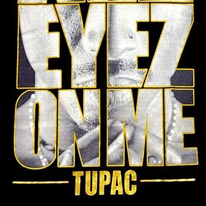 Graphic T-Shirt. 2Pac design with "All Eyez On Me" & "Tupac" text. From the fourth studio album by American rapper 2Pac. Size Extra Large XL (Unisex). 2pac & Hot Topic brands. Black colored shirt with gold, gray & white colored design . 100% cotton. Brand new with tags attached. Perfect for any Tupac Shakur fan!