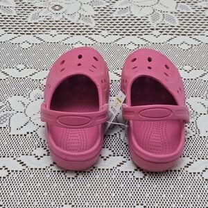 Cute new pair of girl's slip on clogs shoes. They're lightweight size M 13/1 and are perfect for spring and summer. These slip on shoe have a moveable ankle strap.
