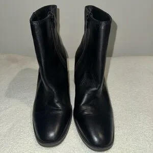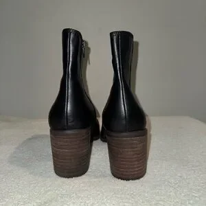 Lucky Brand Black Leather Ankle Boots with Chunky Heel