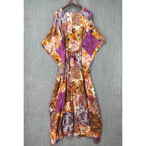 Aakaa Maxi Dress Womens Size S Multicolor Patchwork Kimono Sleeves V-Neck Lightweight Back Tie