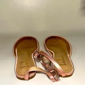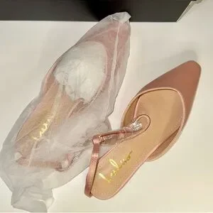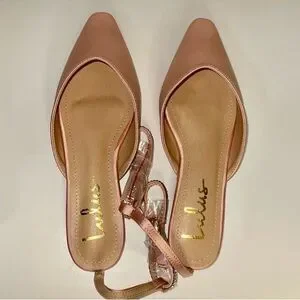 NIB Lulu’s Valetta Champagne Pink Satin Rhinestone Ankle Strap Flats 7