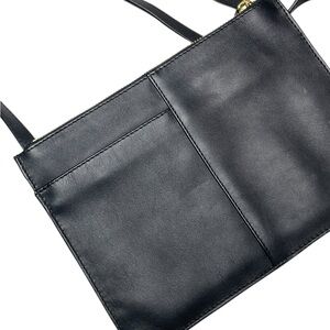 Sleek and stylish black crossbody bag, perfect for any occasion. Features a minimalist design with a subtle logo detail.