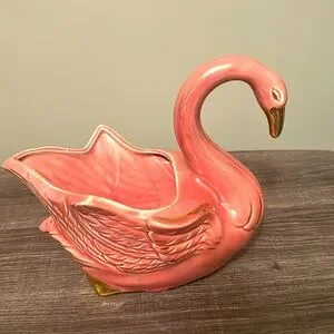 Vintage Cameron Clay MCM pink swan flamingo 🦢 planter, cottage