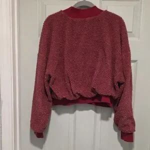 Fabletics Cropped Mock Neck Oversized Burgundy Sweater Fleece