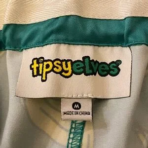 Features a lively banana print in bright yellow against a green background, offering a whimsical and fun look. Made from soft, comfortable fabric. The dynamic design adds a touch of playfulness to a non-serious golf tournament. Zippered front, Two front pockets, two back pockets, belt loops, size M