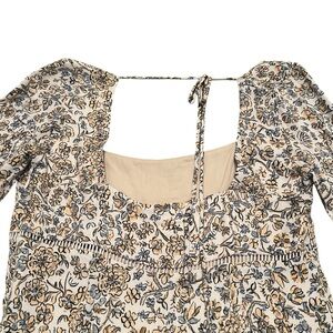Free People Floral Square Neckline Open Back Cream Yellow Blue Mini Dress Size6