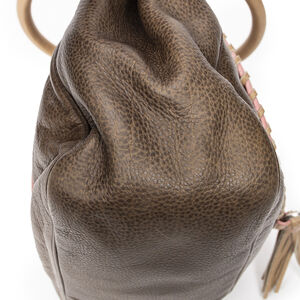 Loewe Shoulder bag Medallion Zipped Flap in Brown/Beige Grained Calfskin Leather and Silver hardware. The product is in Excellent Condition (A).