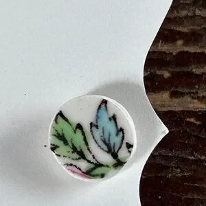 Handmade Broken China Earrings Floral Aqua Blue Green Small Circle-Whimsy Vintage