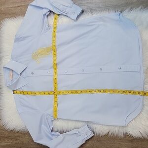 Tory Burch Light Blue Button Down Shirt with Gold Embroidery