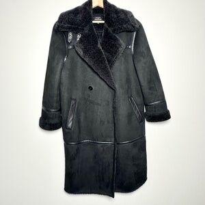 Anthropologie Avec Les Filles Women's Faux Shearling Black Coat Sz Medium