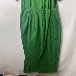 ELOQUII dress women 22 maxi faux wrap short sleeve Kelly Green cuffed sleeves