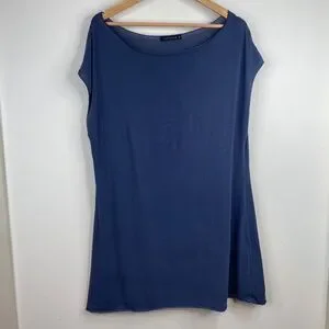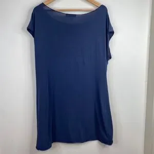 Cut Loose Tunic XL Short Sleeve Mini Dress Navy Lagenlook Boho Beach Lightweight