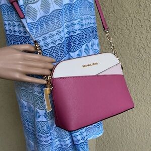 Michael Kors Jet Set Travel Medium Dome Crossbody Rosewood Leather