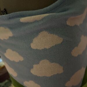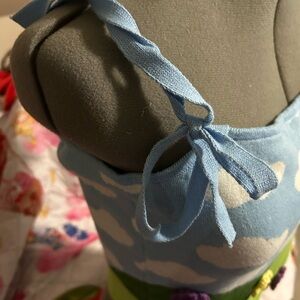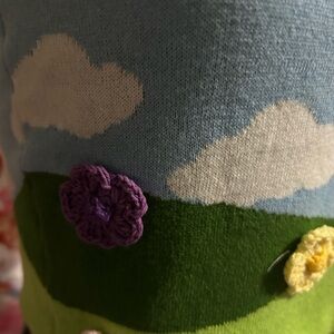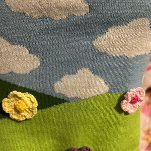 Chic knit top by dELiA*s. Features a blend of blue and green hues. 3d flowers . Tie shoulders . Size M/L. Never worn .
