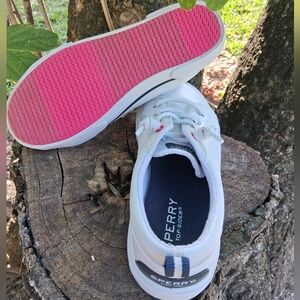 🔥New Sperry Kids Size 13M Pier Wave White shoes hot pink accents