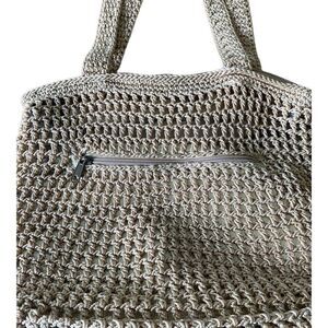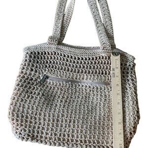 The SAK Tan & Gold Crochet ZIp Inner & Outer Pockets Shoulder bag