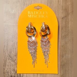 Badgley Mischka Gold Tone & Crystal Chandelier Earrings NWT