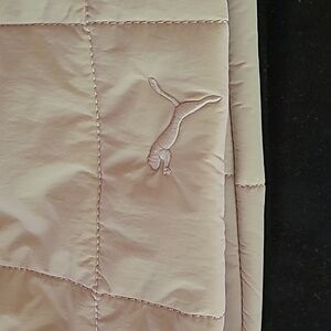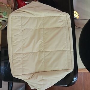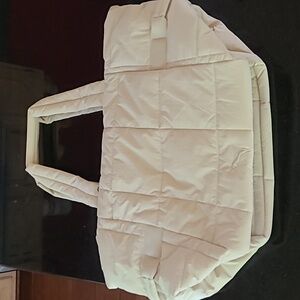 Stylish and versatile puffy tote bag in a chic Beige color, zip closure, interior slip pocket, lugage strap, laptop sleeve. Perfect for everyday use.