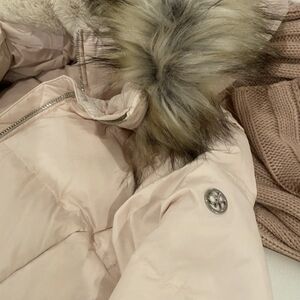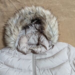 Embrace warmth and style with this chic cream down puffer jacket by Calvin Klein. The faux fur hood adds a touch of elegance, making it ideal for winter adventures. Two inside zipper pockets. Beautiful coat. Size says XXL but runs small.