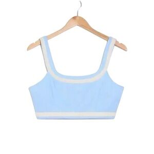 NEW Avec Les Filles Colorblock Linen Blend Crop Top Sz M