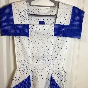 Handmade 1960's Retro Style Apron White Blue Dots Kitchen Linens Cottage Core