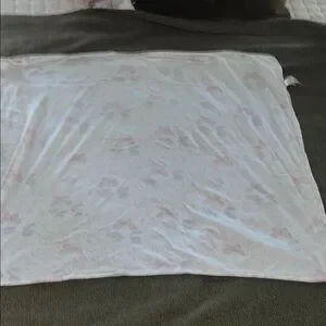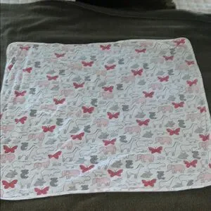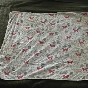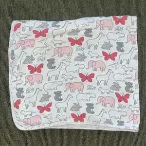 100% cotton receiving blanket featuring a charming animal print. The pink and gray colors add a playful touch to any child's room.