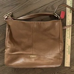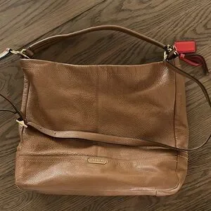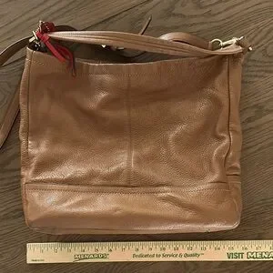 Coach Tan and Red Soft Pebble Leather Crossbody Bag