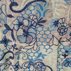 Eva Mendes for New York & Company Elegant Blue Patterned Midi Dress