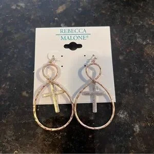 Rebecca Malone Gold and Silver Cross Hoop Earrings