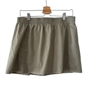 Girlfriend Collective Matcha Birdie Woven Skort in large. Has shorts with pockets underneath. Color is like the stock photos. It has some slight snagging as pictured, otherwise in great condition!