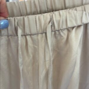 Luxurious satin pants in a soft champagne hue. Ideal for a sophisticated style.