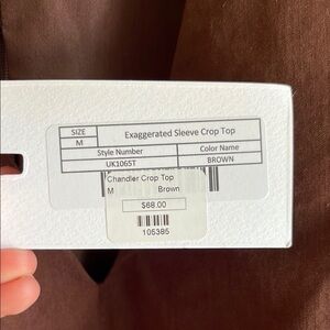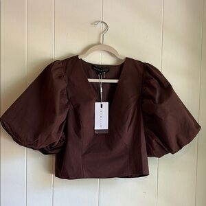 NWT Endless Rose Brown Puff Sleeve Chandler Cotton V- Neck Crop Top Blouse Sz M