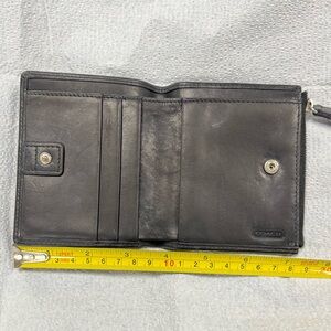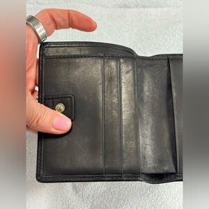 Elegant black leather wallet with side zipper. Ideal for daily essentials. Very good used condition.