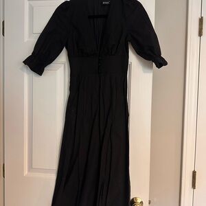 Linen Black Midi Dress with Slit