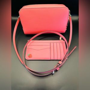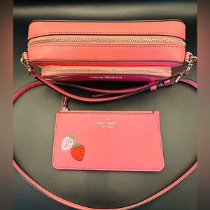 Kate Spade camera crossbody bag with adjustable strap. Exterior zipper pocket, interior zipper compartment and credit card slots. Also included is a Strawberry Slim cardholder with zipper. Gorgeous set💕. EXCELLENT used condition. Smoke free home