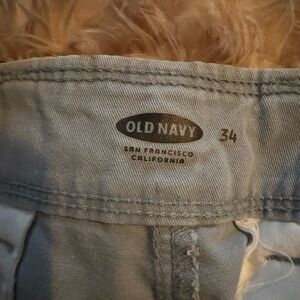 Experience comfort and style with these Old Navy light blue flat front shorts. Designed for a relaxed fit, they are perfect for casual outings and everyday wear. The lightweight fabric ensures breathability and ease of movement. Size 34. Never worn. Didn’t fit my husband. Very good condition. Smoke free home. Looks gray it’s just the lighting in my room.